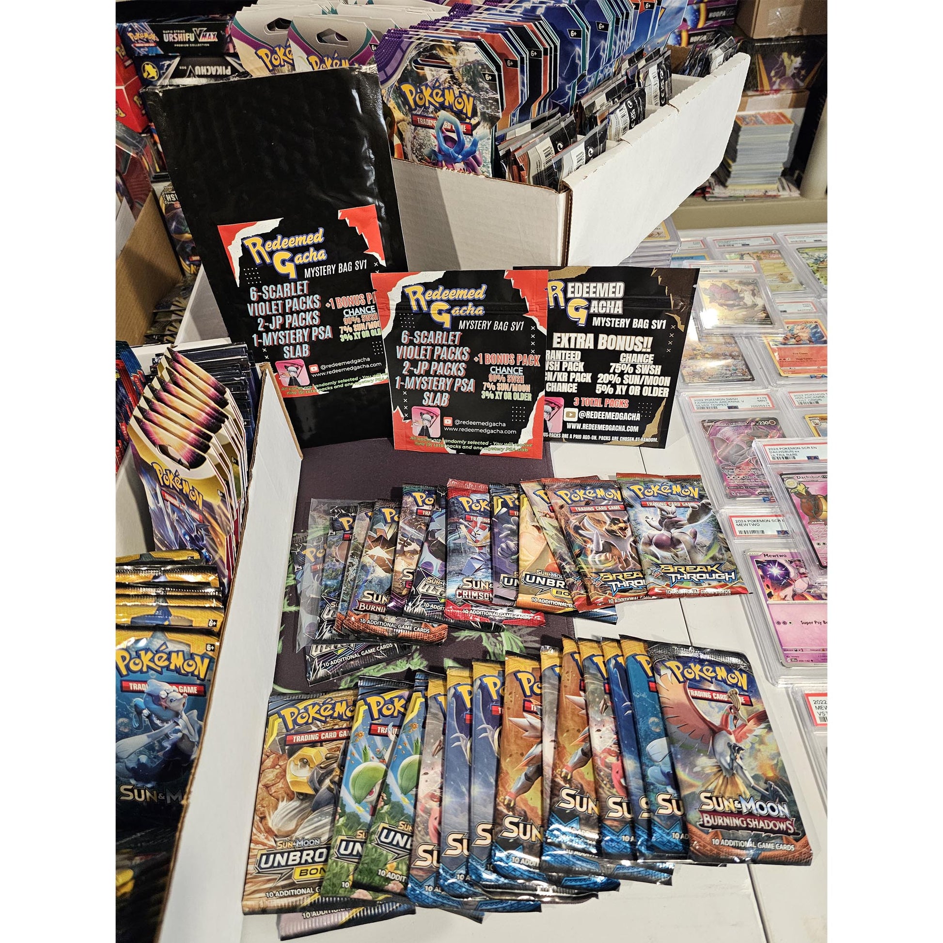 Redeemed Gacha offers a unique selection of sealed booster packs, PSA-graded cards, and vintage surprises - all in one thrilling bundle. Whether you’re a longtime collector or buying a gift, our mystery bags are packed with value, excitement, and authenticity. With a chance at rare pulls, classic cards, and iconic sets from Sword & Shield, Sun & Moon, and beyond - every order delivers a real Pokémon experience.